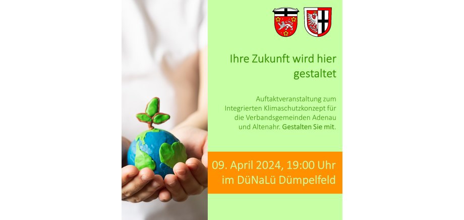 ich freue mich, Sie zur Auftaktveranstaltung des Klimaschutzkonzepts für die Verbandsgemeinden Adenau und Altenahr einladen zu dürfen. Gemeinsam möchten wir den Klimaschutz in unseren Verbandsgemeinden gestalten und für eine nachhaltige Zukunft sorgen.