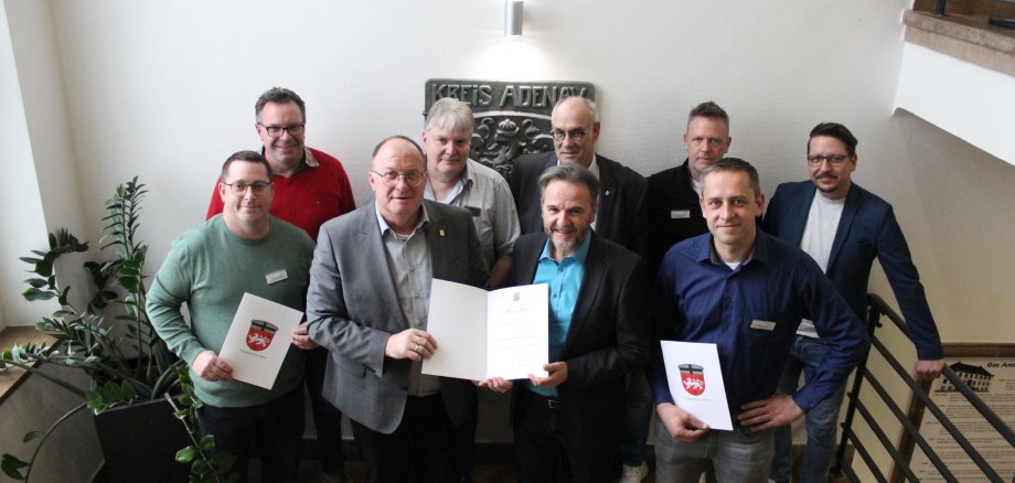 Adenau. Im Adenauer Rathaus wurden kürzlich drei Dienstjubiläen gefeiert: Jürgen Adriany (40-jähriges), Werkleiter des Abwasserwerkes der Verbandsgemeinde Adenau, Christian Backes, stellv. Fachbereichsleiter des Fachbereiches 2 -Planen und Bauen- sowie Michael Schober, stellv. Fachbereichsleiter des Fachbereiches 4 -Finanzen und Abgaben- (beide 25-jähriges Dienstjubiläum) wurden für ihre langjährige Treue und ihr Engagement gewürdigt.