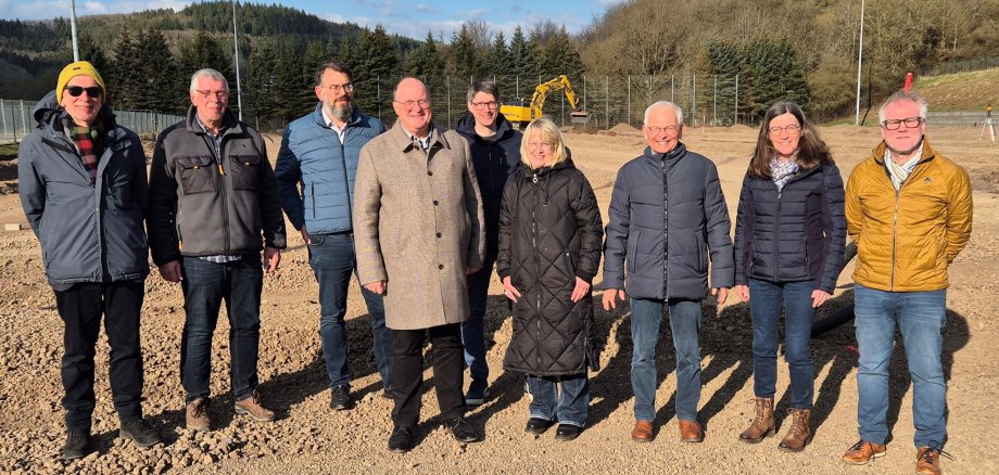 Die Herstellung des Kunstrasenplatzes im Eifelstadion in Adenau schreitet weiter voran. Mitglieder des Verbandsgemeinderates besichtigten die Baustelle, um sich ein Bild vom aktuellen Stand der Arbeiten zu machen.