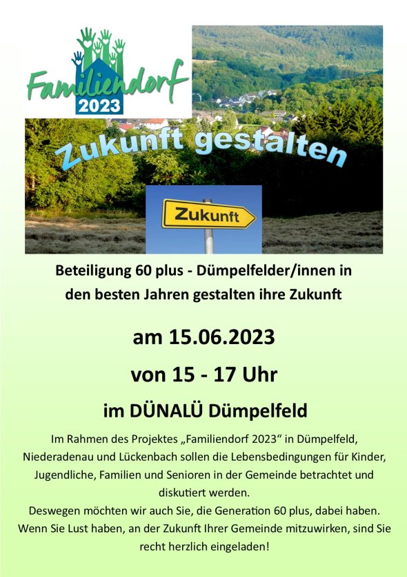 Im Rahmen der Dorfmoderation und des Familiendorf 2023 sollten die Lebensbedingungen der Menschen 60+ in der Gemeinde betrachtet und diskutiert werden. Dazu wurden alle Menschen ab 60+ aus den Ortsgemeinden Niederadenau, Dümpelfeld und Lückenbach am 15.06.2023 zu Kaffee und Kuchen ins DüNaLü eingeladen. Neben Petra Jeandrèe, Gemeindeschwester Plus, Ortsbürgermeister Robert Reuter sowie Sandra Weber und Alexander Schlich vom Generationenbüro der Verbandsgemeinde Adenau freuten sich auf viele Gäste die der Einladung gefolgt sind. Petra Jeandrèe stellte Ihre Arbeit vor und gesellte sich für Fragen mit einem offenen Ohr dazu. Neben dem Verzehr von Kaffee und Kuchen kam es zu einem interessanten Austausch, vielen Informationen und auch Wünschen. Wir möchten uns für diesen gelungenen Nachmittag besonders bei den tatkräftigen Helfern und den leckeren Kuchen Spendern bedanken.