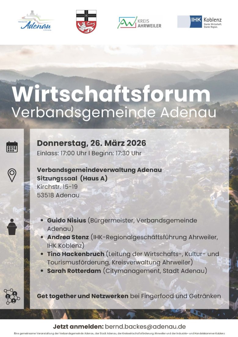 Wir unterstützen Sie in allen Fragen rund um den Wirtschaftsstandort Verbandsgemeinde Adenau